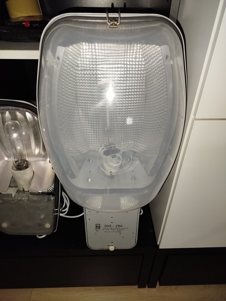 Ciekawostka!!! W lutym 2020 posiadałem OUSe-70 (zdjęcia przed myju myju od razu po przyniesieniu, zawierała prawie nowa żarówkę NATRIUM WLS 70 TC EXTRA oraz kawałek uciętego kabelka YDYp 3x1,5mm2) zdemontowaną z okolic Rynku Zduńskiego przy demontażu linii napowietrznej. Niestety już jej nie mam od dawna... 😭